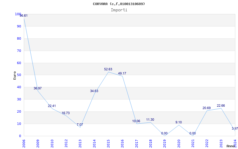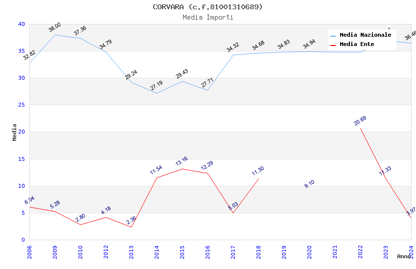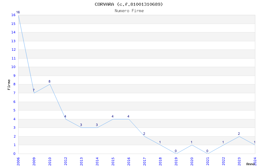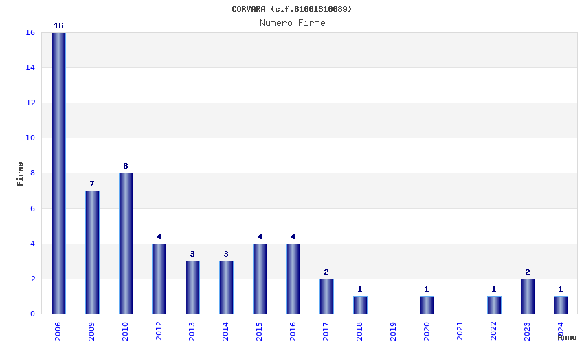 | Anno | Firme | Importi | Media | Naz. | Reg. | Prov. | Comu. |