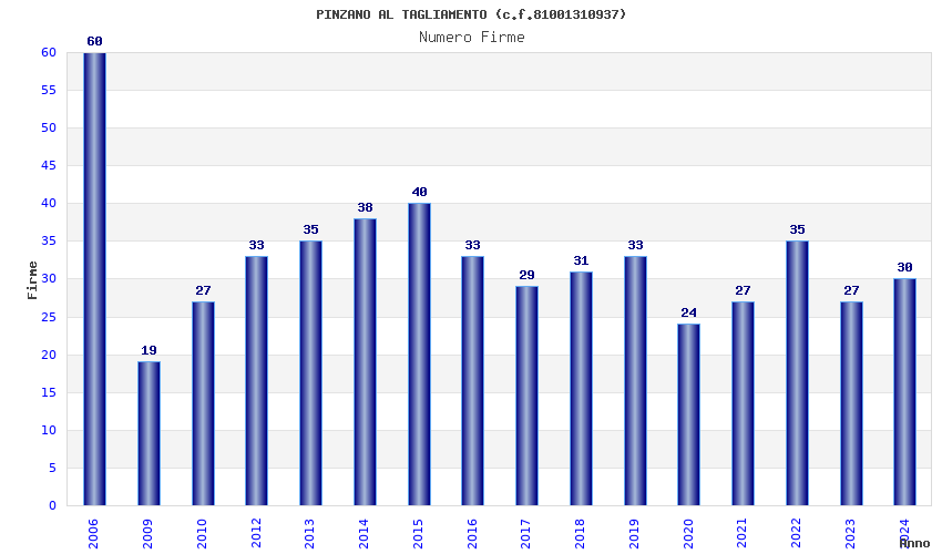 | Anno | Firme | Importi | Media | Naz. | Reg. | Prov. | Comu. |