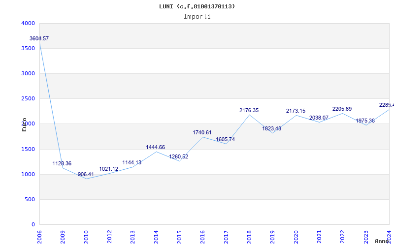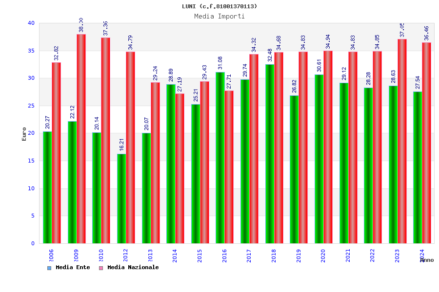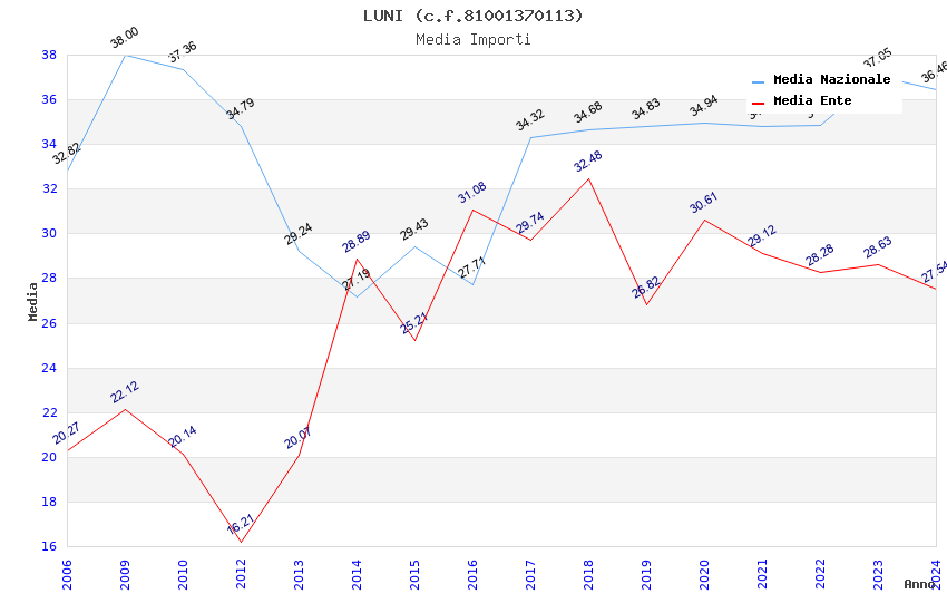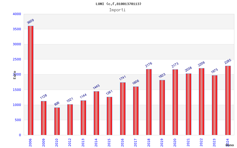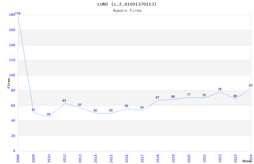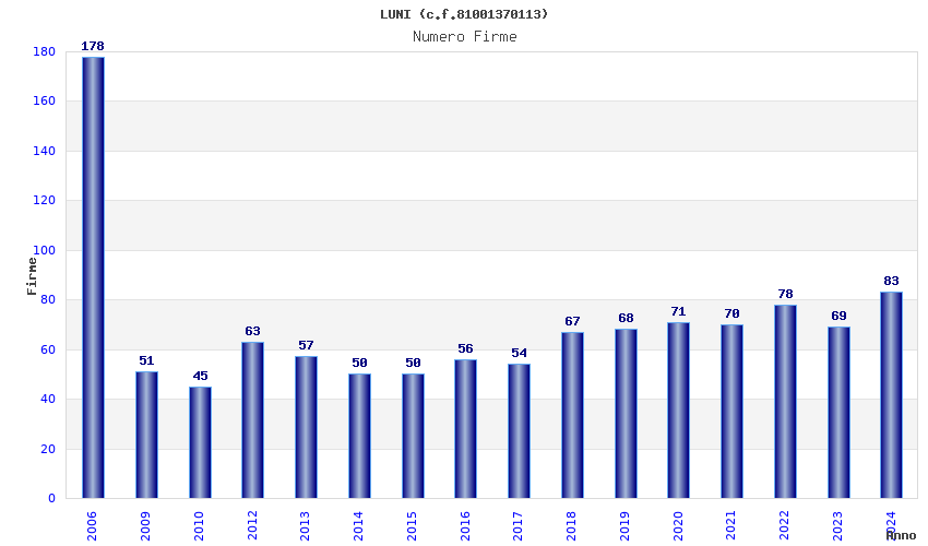 | Anno | Firme | Importi | Media | Naz. | Reg. | Prov. | Comu. |