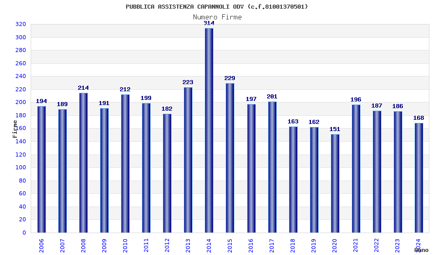 | 2014 | 314 | 7.081,61 | 22,55 | 7.612 | 501 | 70 | 1 |