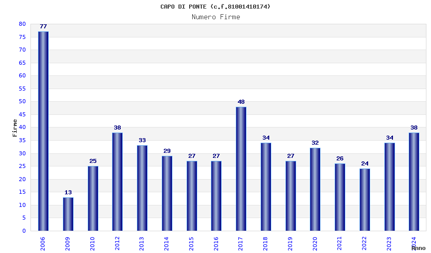 | Anno | Firme | Importi | Media | Naz. | Reg. | Prov. | Comu. |
