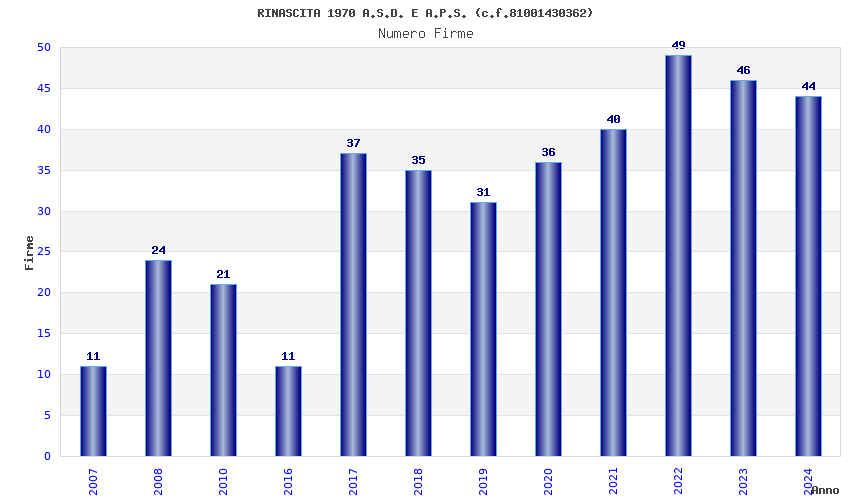 | 2024 | 44 | 1.450,47 | 32,97 | 30.090 | 2.623 | 379 | 43 |