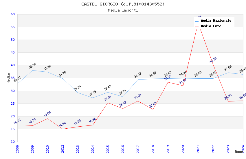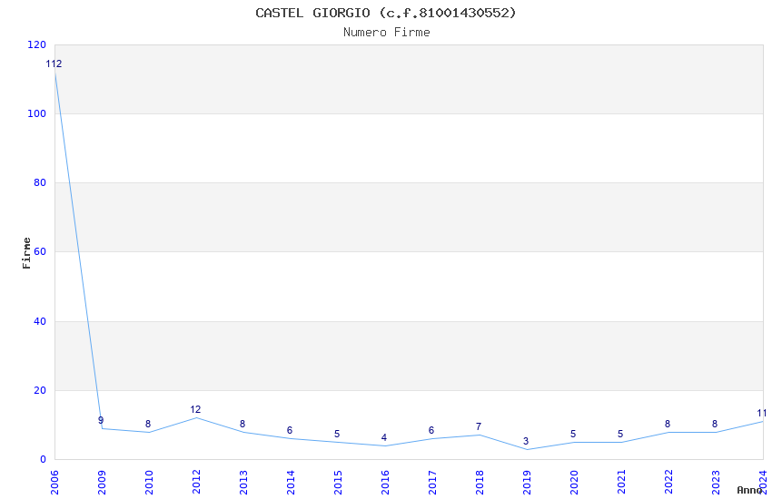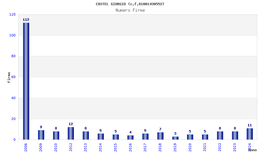 | Anno | Firme | Importi | Media | Naz. | Reg. | Prov. | Comu. |
