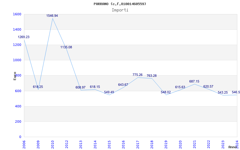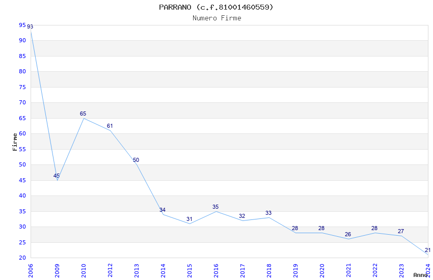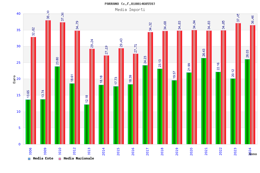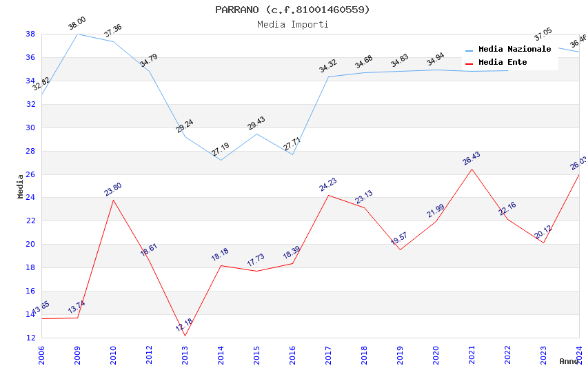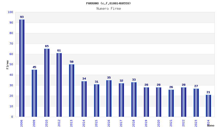 | Anno | Firme | Importi | Media | Naz. | Reg. | Prov. | Comu. |