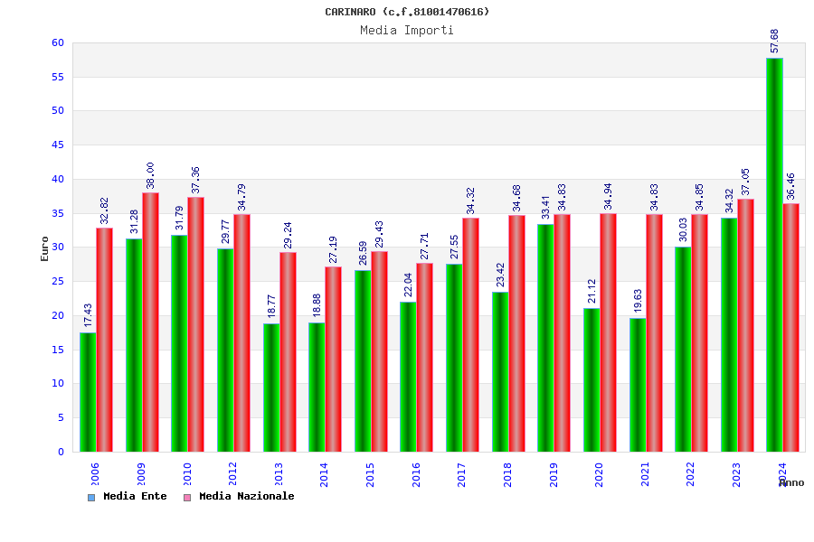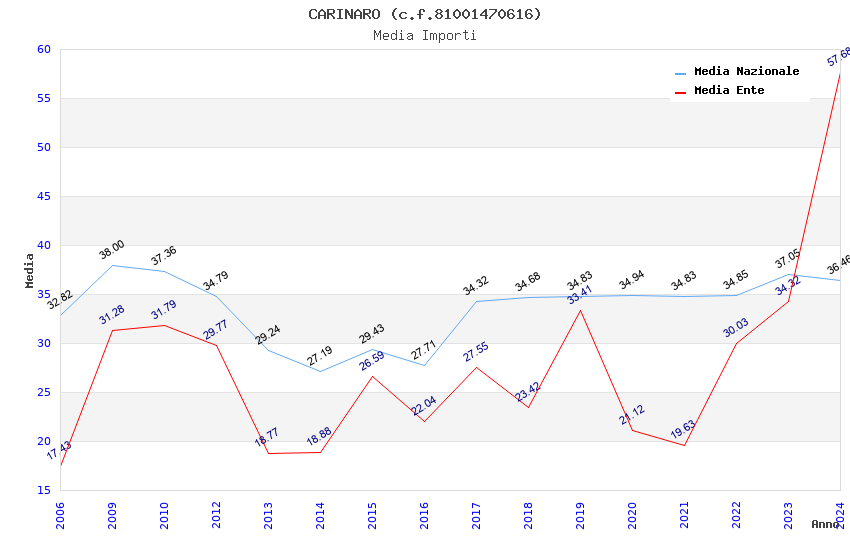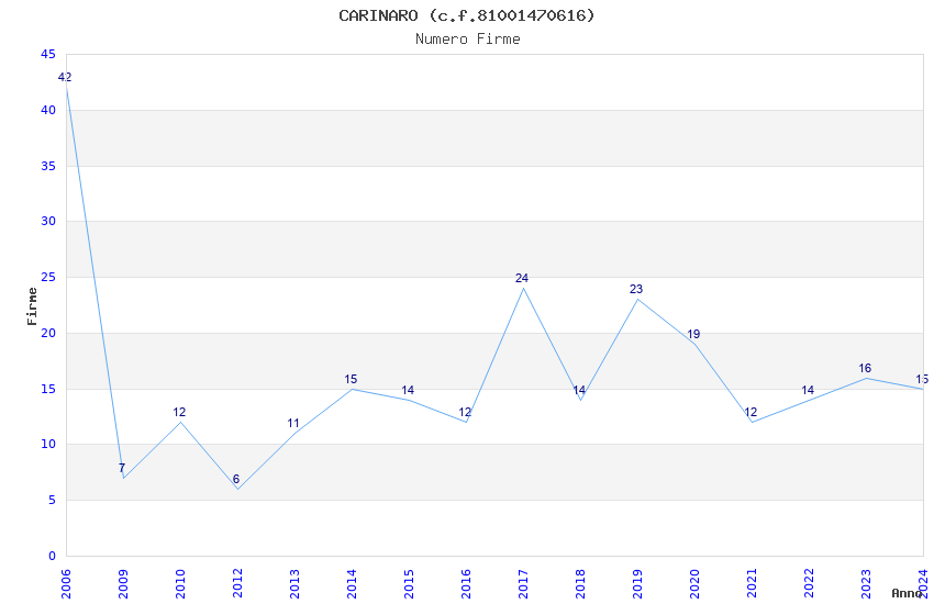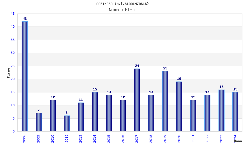 | Anno | Firme | Importi | Media | Naz. | Reg. | Prov. | Comu. |