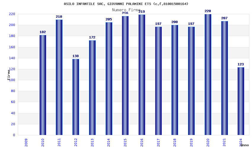 | Anno | Firme | Importi | Media | Naz. | Reg. | Prov. | Comu. |