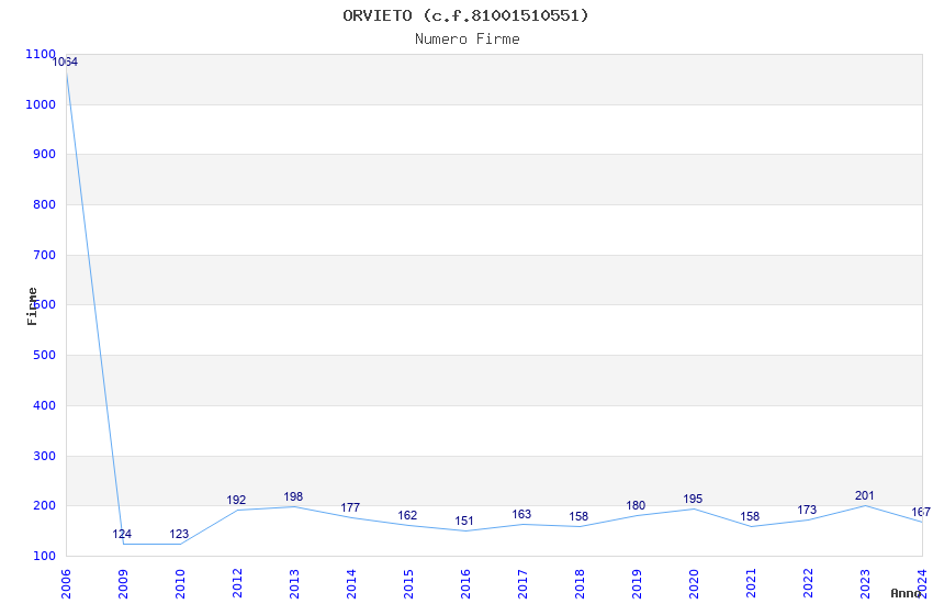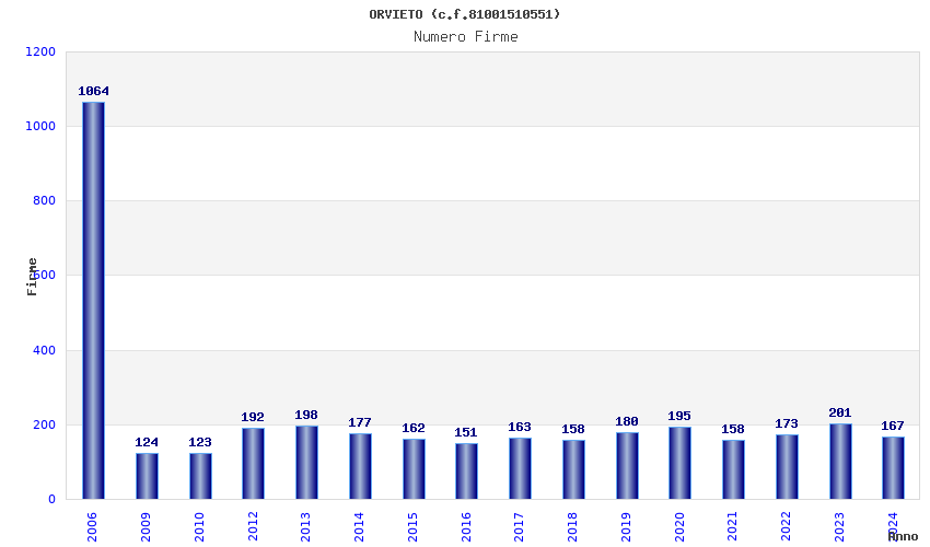 | Anno | Firme | Importi | Media | Naz. | Reg. | Prov. | Comu. |