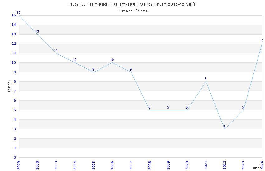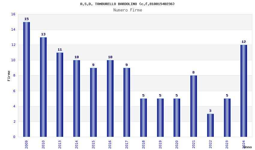 | Anno | Firme | Importi | Media | Naz. | Reg. | Prov. | Comu. |