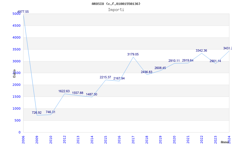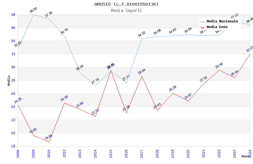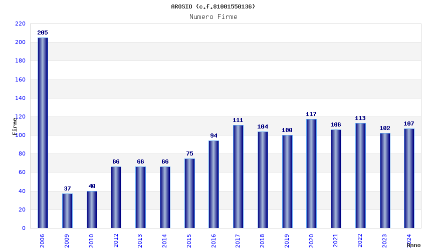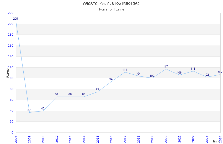 | Anno | Firme | Importi | Media | Naz. | Reg. | Prov. | Comu. |