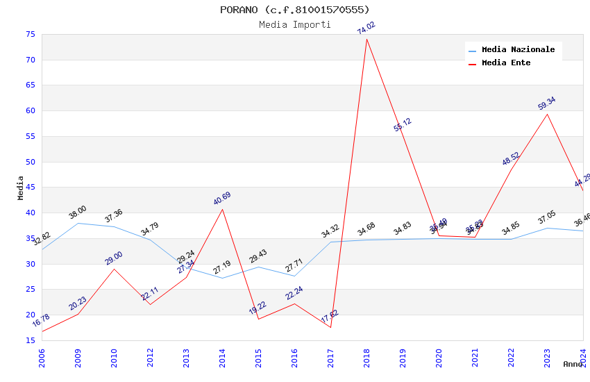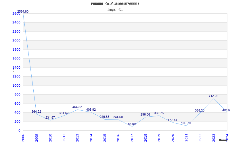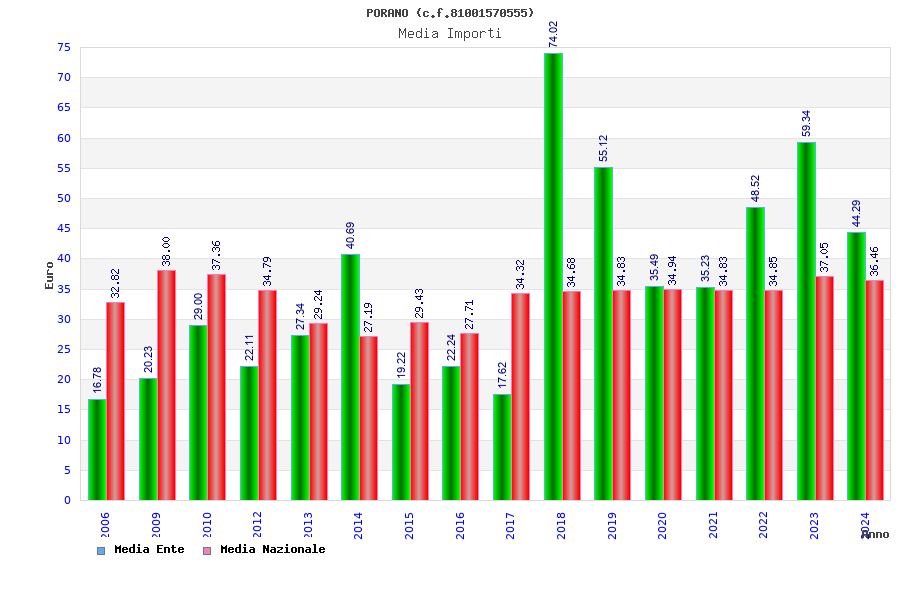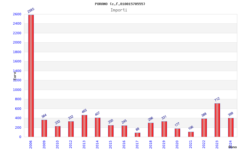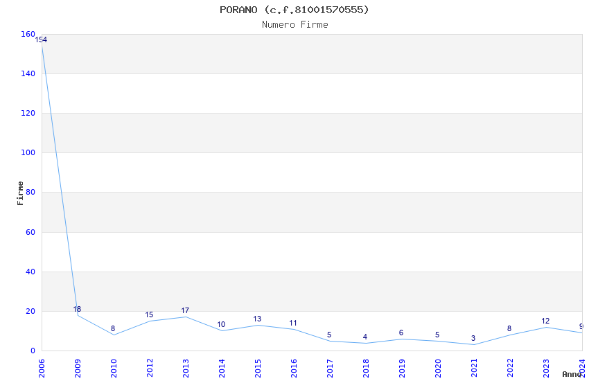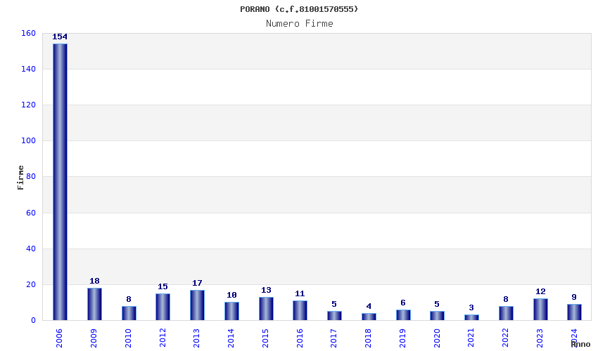 | Anno | Firme | Importi | Media | Naz. | Reg. | Prov. | Comu. |