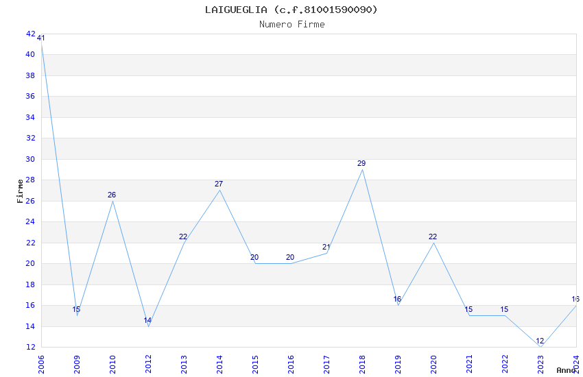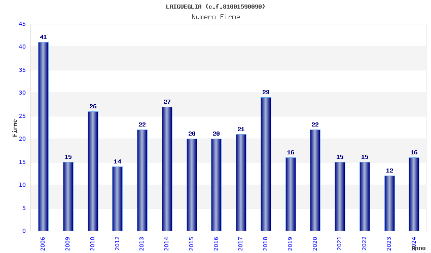 | Anno | Firme | Importi | Media | Naz. | Reg. | Prov. | Comu. |