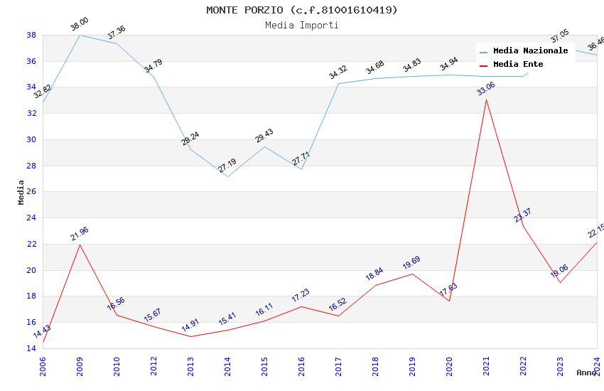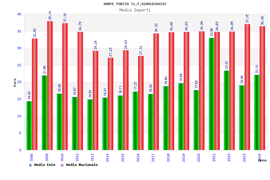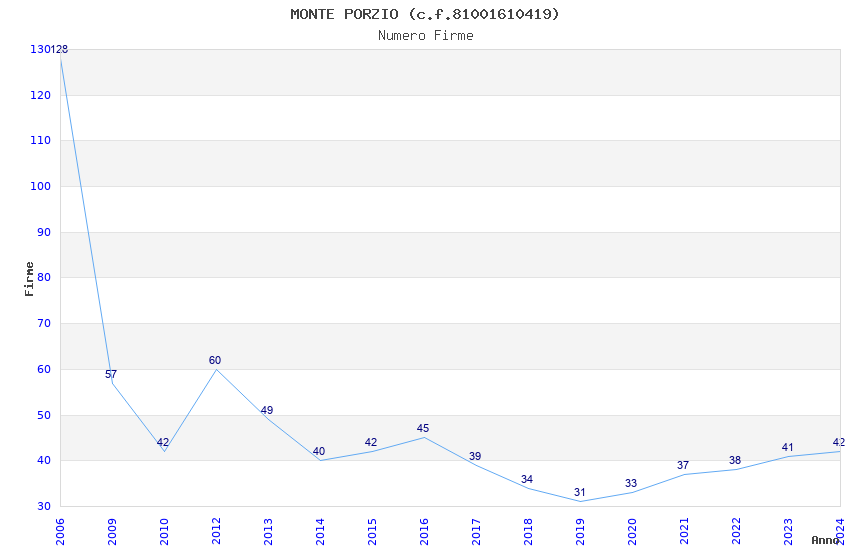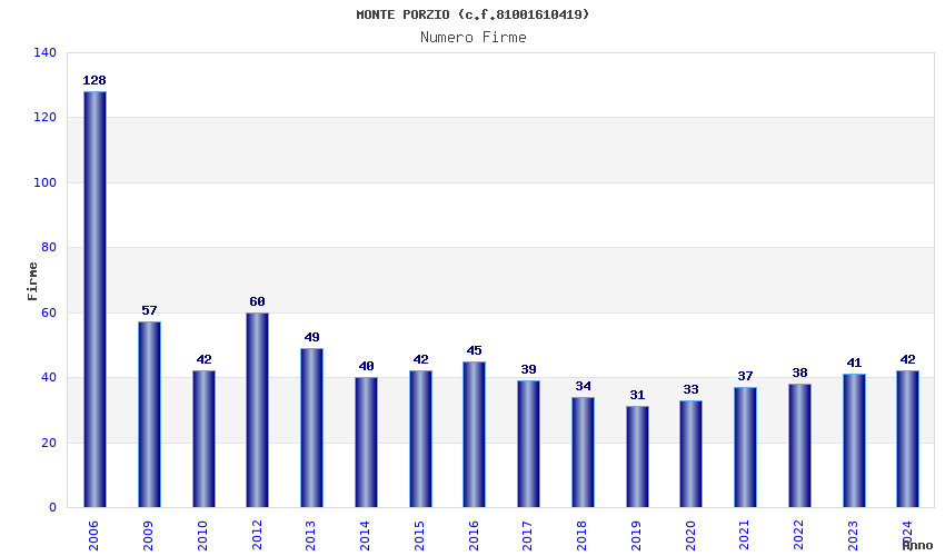 | Anno | Firme | Importi | Media | Naz. | Reg. | Prov. | Comu. |