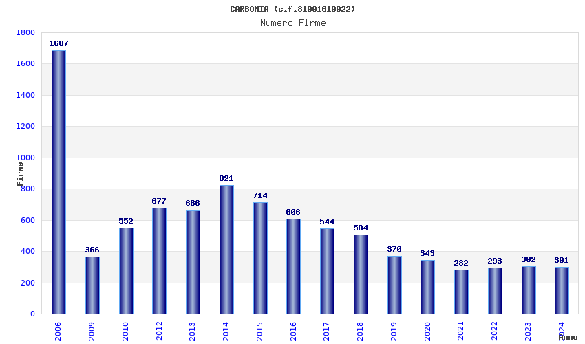 | Anno | Firme | Importi | Media | Naz. | Reg. | Prov. | Comu. |