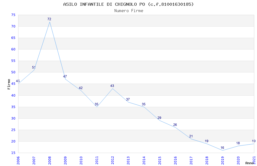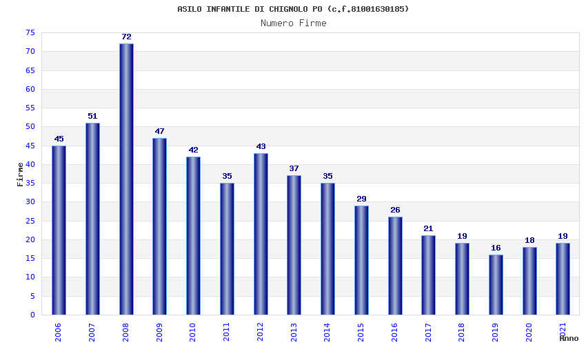| Anno | Firme | Importi | Media | Naz. | Reg. | Prov. | Comu. |