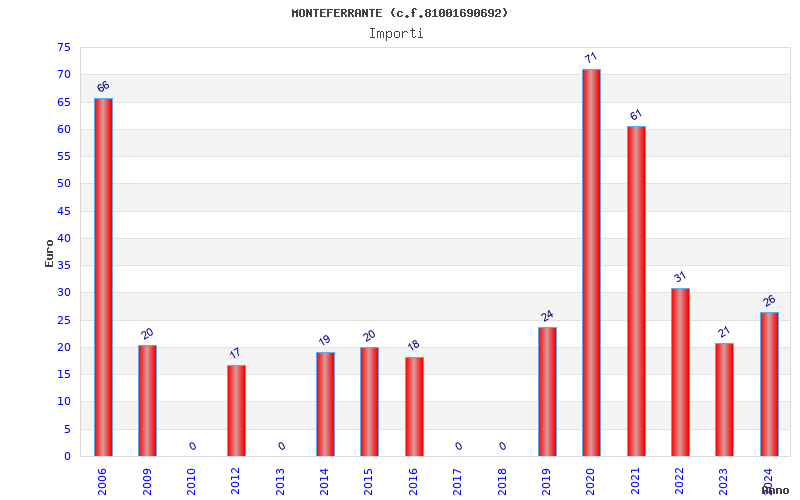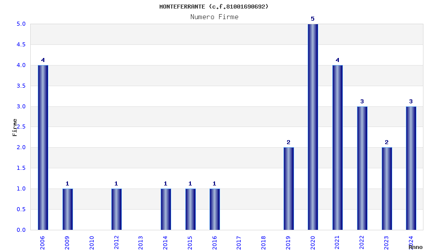 | Anno | Firme | Importi | Media | Naz. | Reg. | Prov. | Comu. |