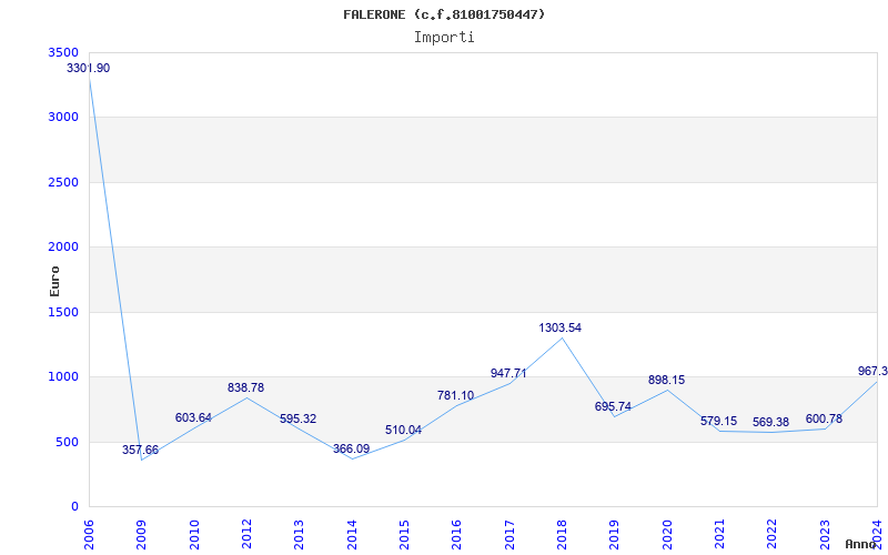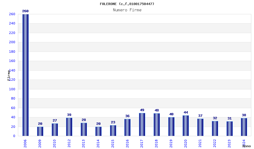 | Anno | Firme | Importi | Media | Naz. | Reg. | Prov. | Comu. |