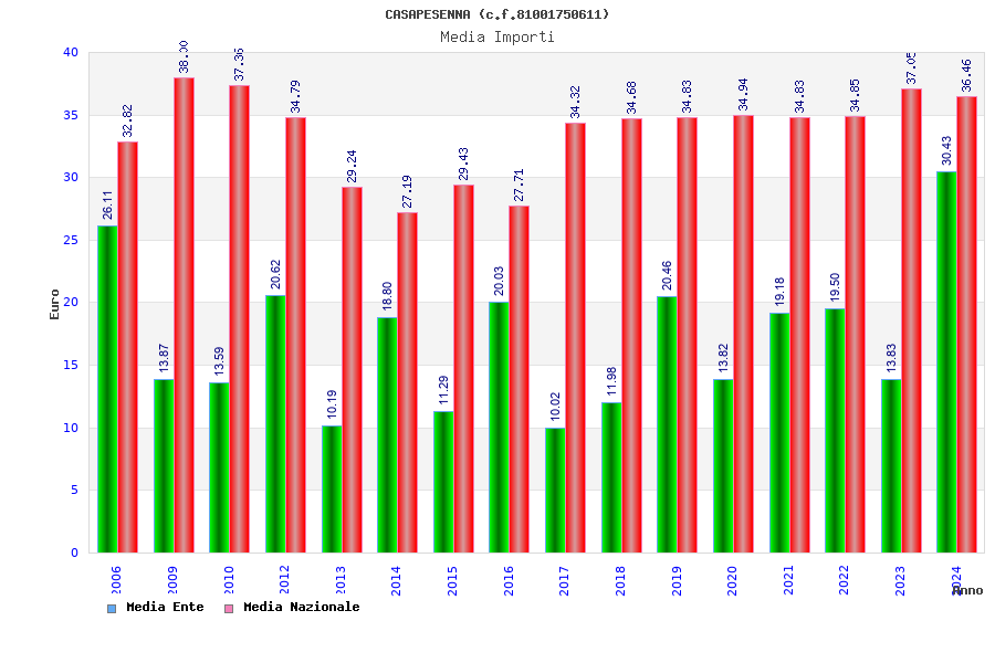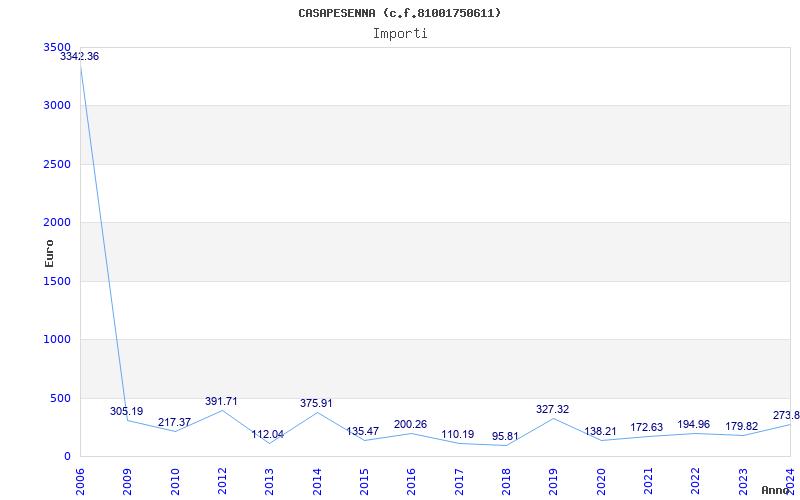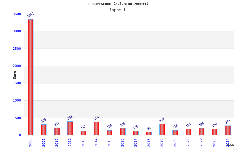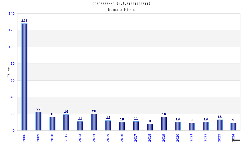 | Anno | Firme | Importi | Media | Naz. | Reg. | Prov. | Comu. |