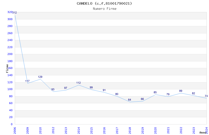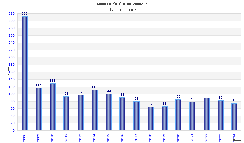 | Anno | Firme | Importi | Media | Naz. | Reg. | Prov. | Comu. |