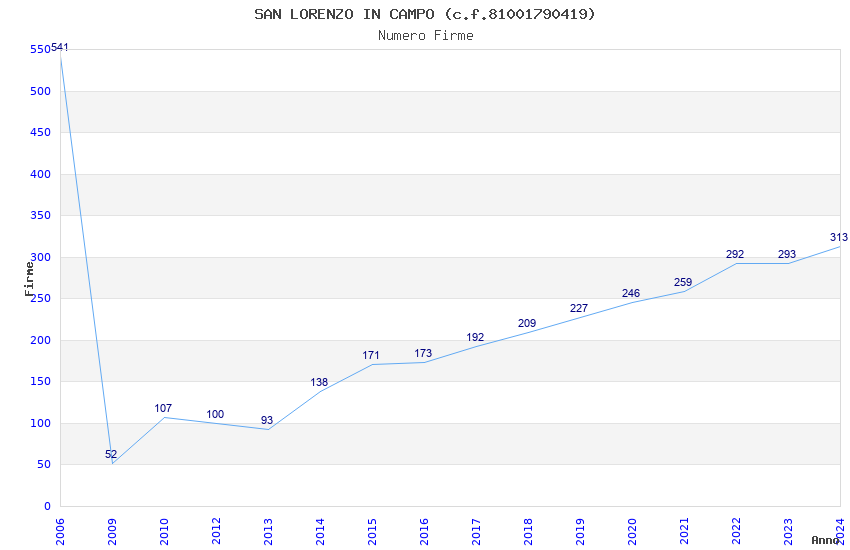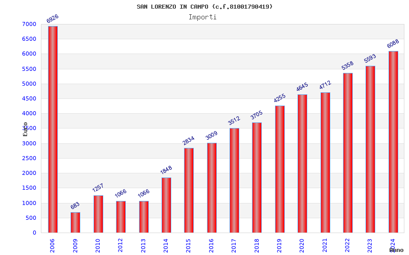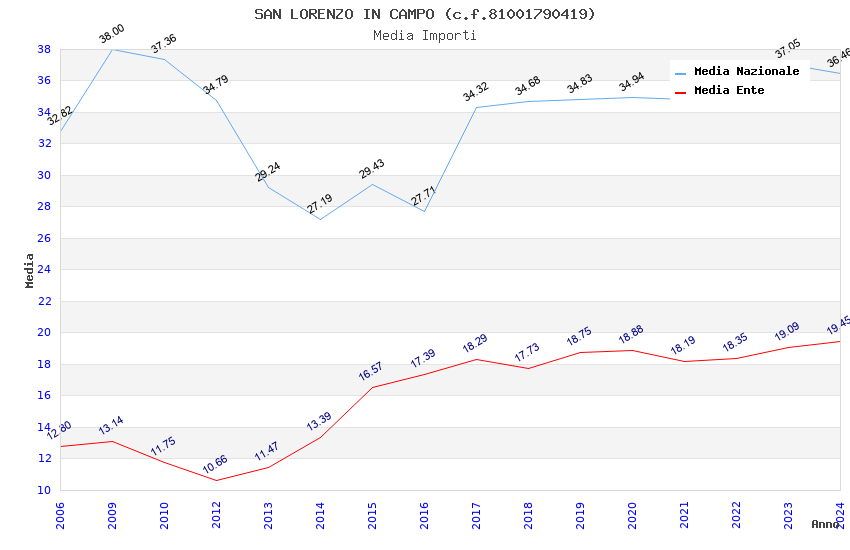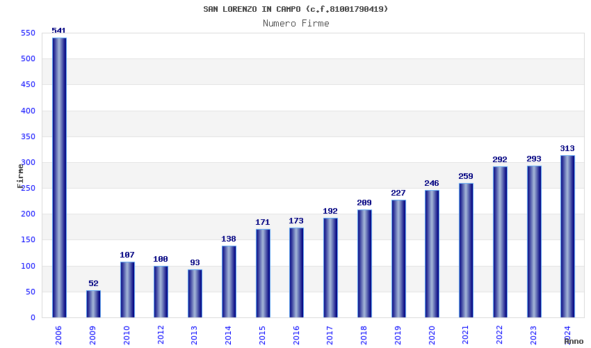 | Anno | Firme | Importi | Media | Naz. | Reg. | Prov. | Comu. |