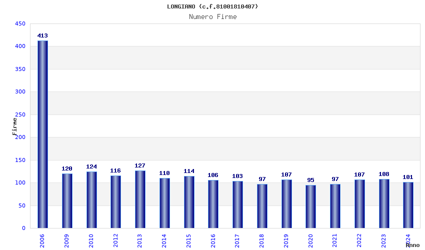| Anno | Firme | Importi | Media | Naz. | Reg. | Prov. | Comu. |