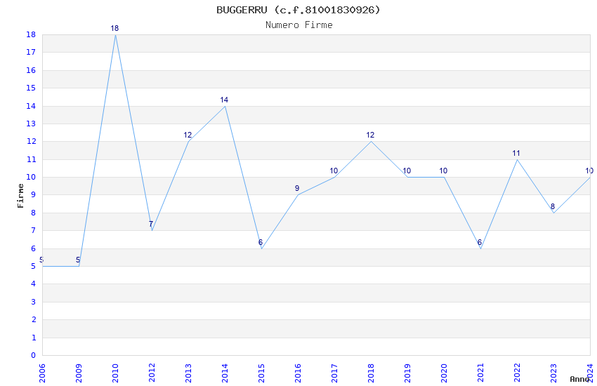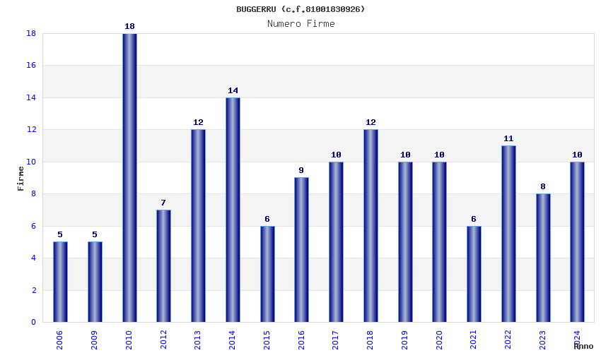 | Anno | Firme | Importi | Media | Naz. | Reg. | Prov. | Comu. |