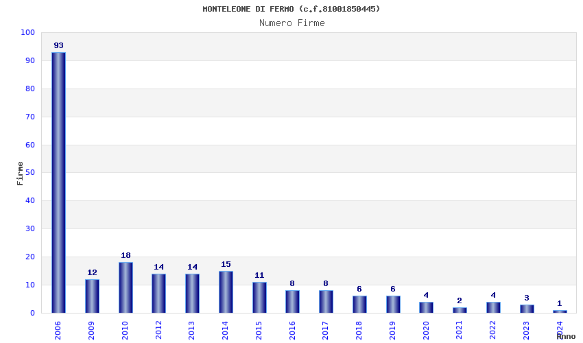 | Anno | Firme | Importi | Media | Naz. | Reg. | Prov. | Comu. |