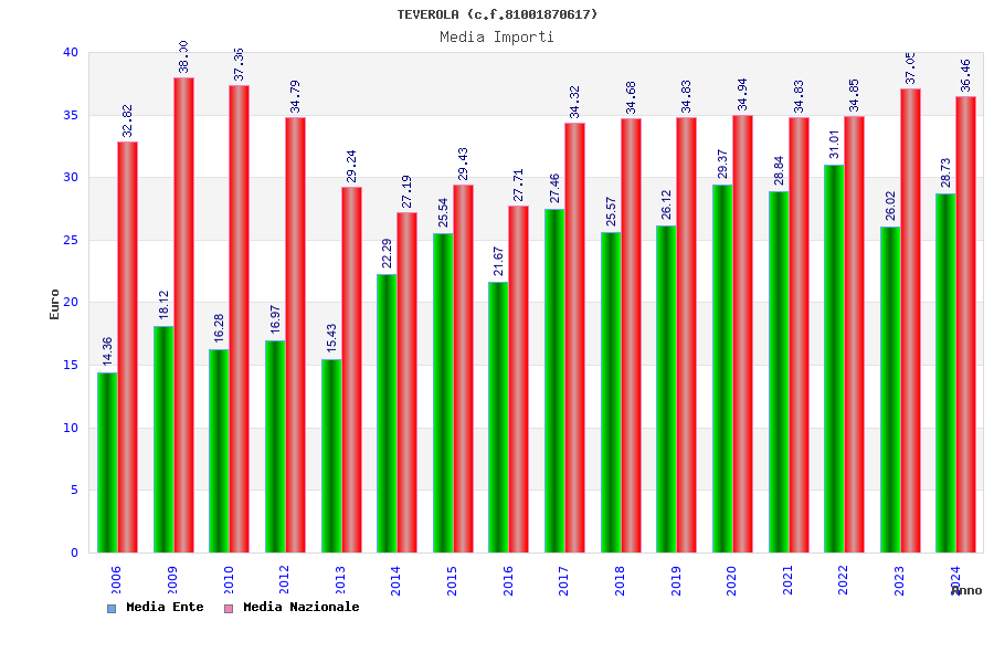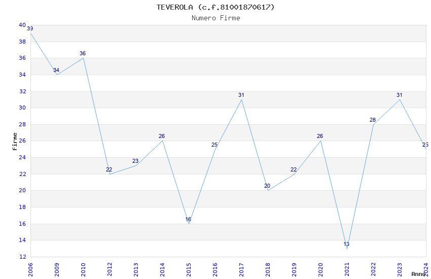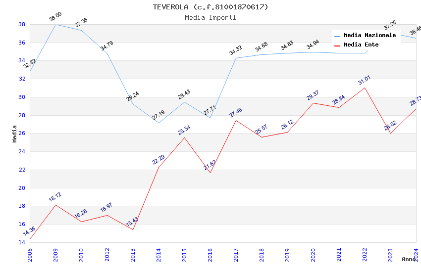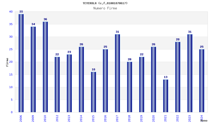 | Anno | Firme | Importi | Media | Naz. | Reg. | Prov. | Comu. |
