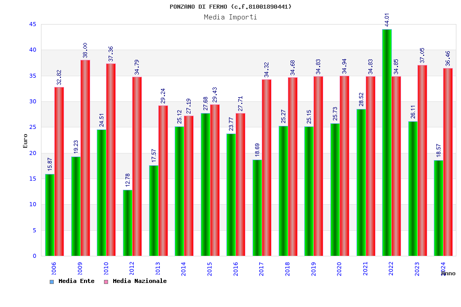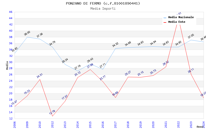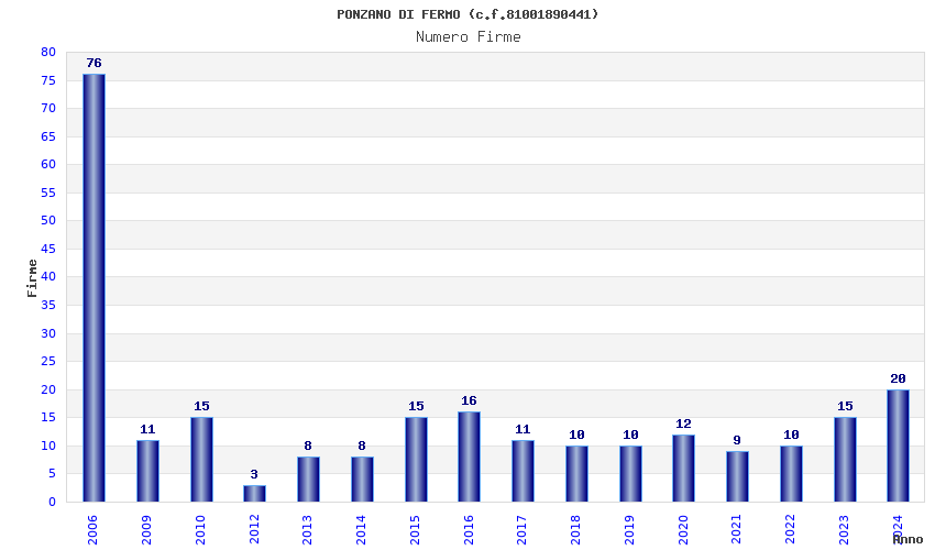 | Anno | Firme | Importi | Media | Naz. | Reg. | Prov. | Comu. |