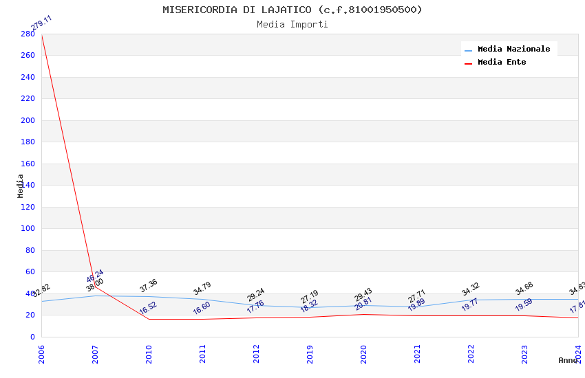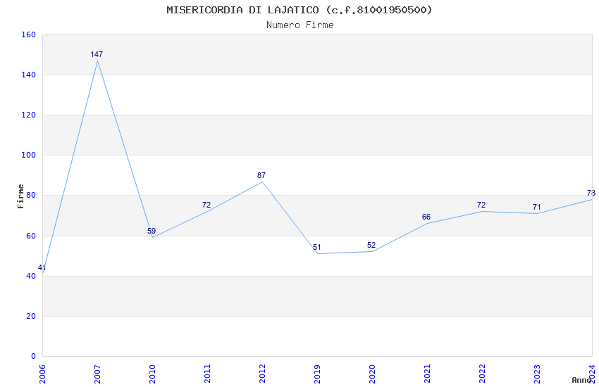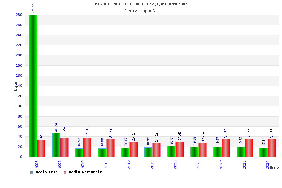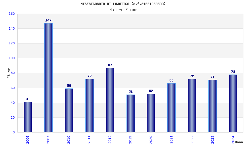 | Anno | Firme | Importi | Media | Naz. | Reg. | Prov. | Comu. |
