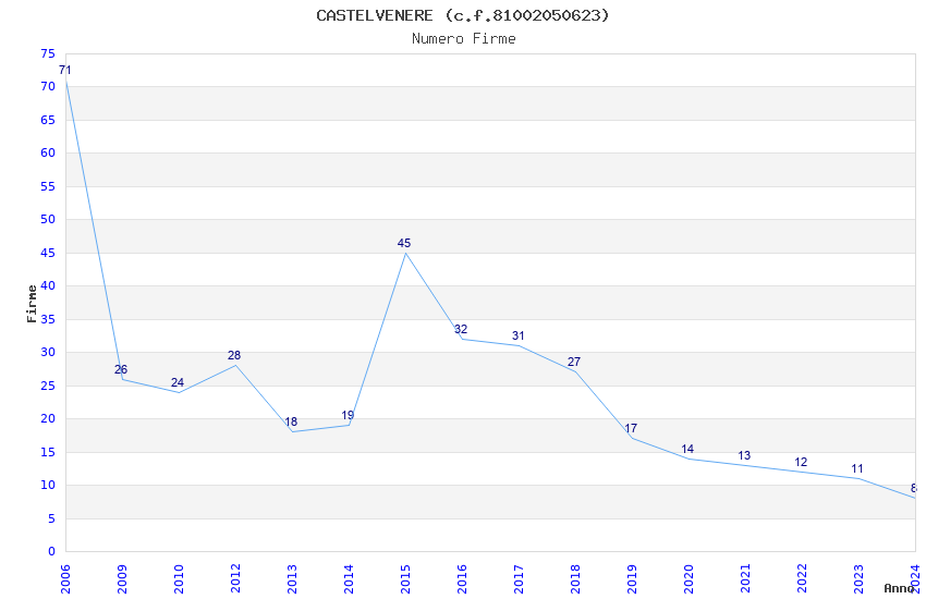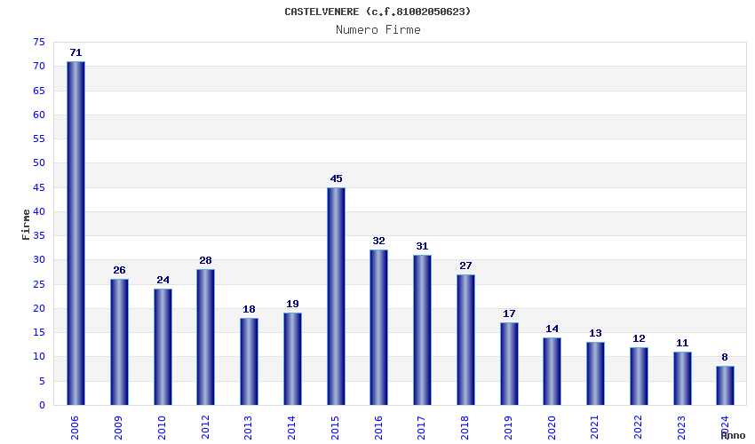 | Anno | Firme | Importi | Media | Naz. | Reg. | Prov. | Comu. |