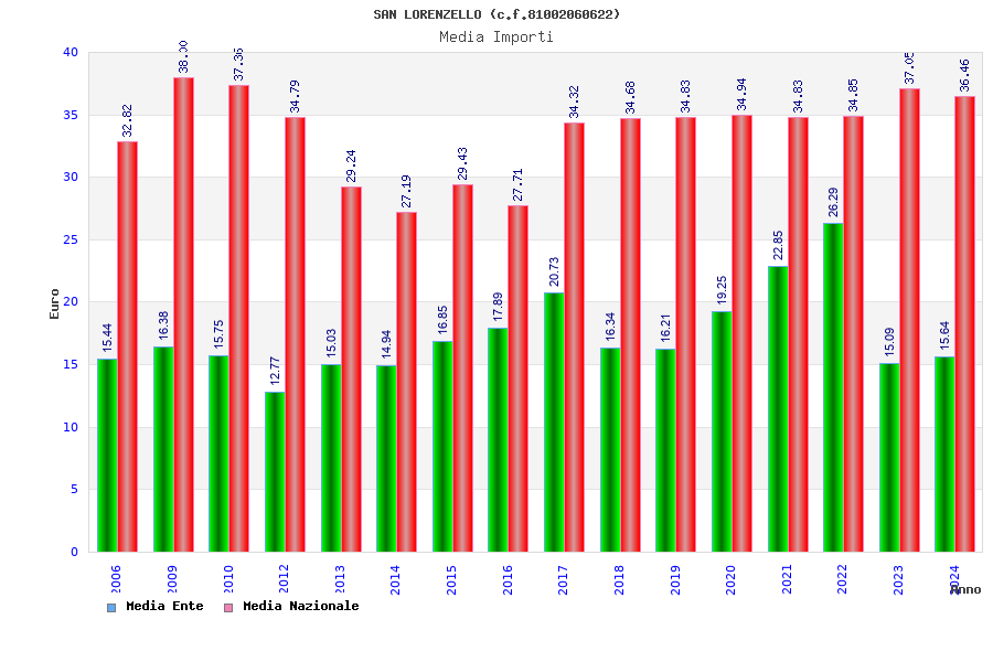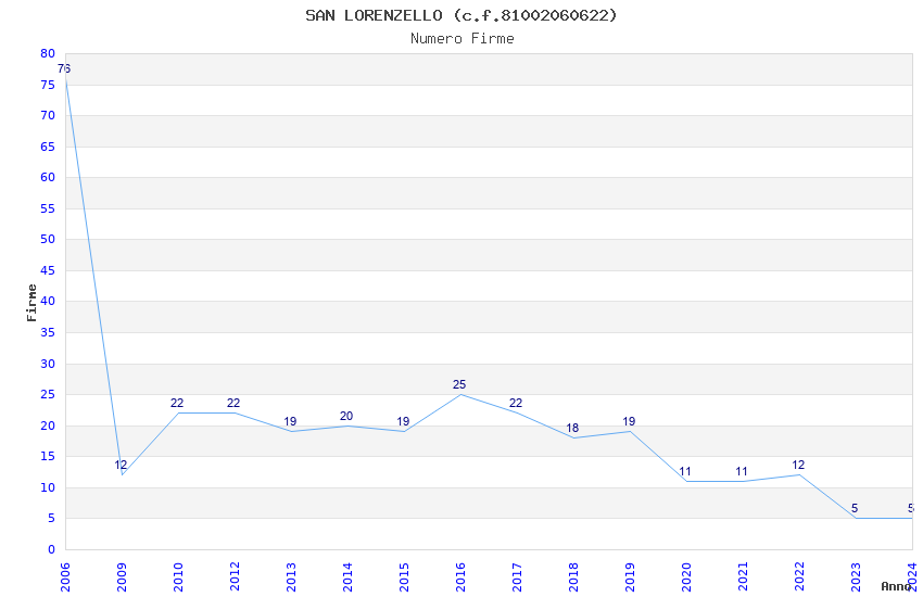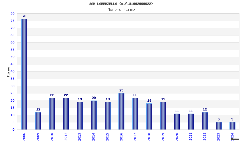 | Anno | Firme | Importi | Media | Naz. | Reg. | Prov. | Comu. |