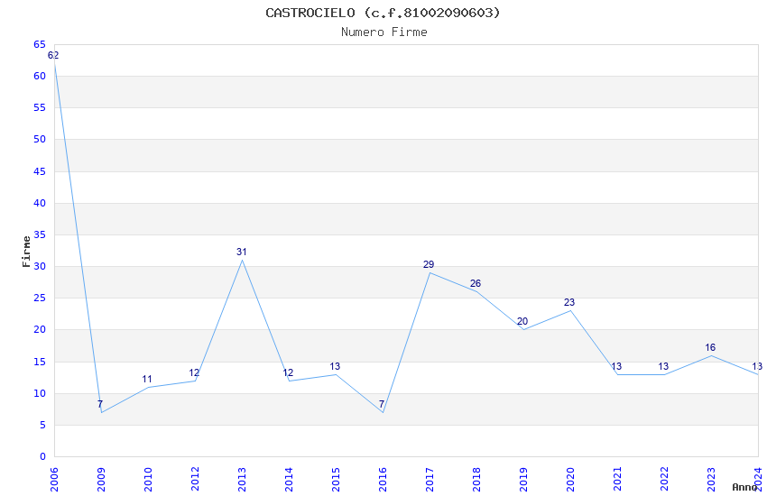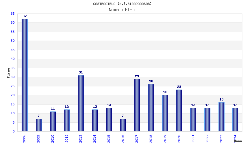 | Anno | Firme | Importi | Media | Naz. | Reg. | Prov. | Comu. |
