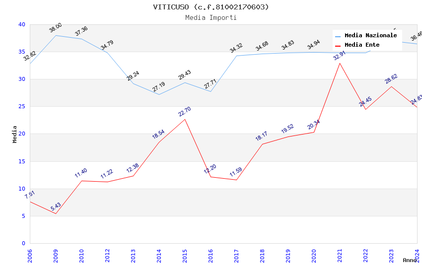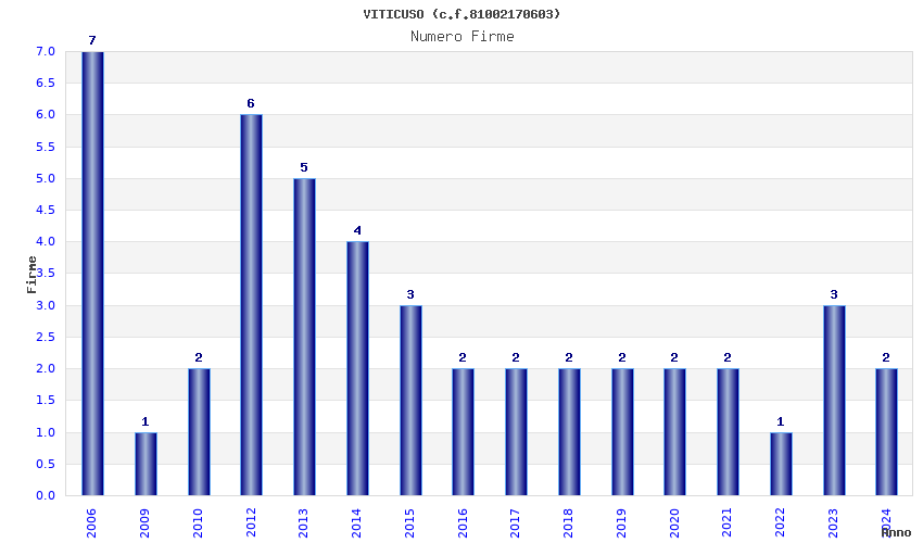 | Anno | Firme | Importi | Media | Naz. | Reg. | Prov. | Comu. |