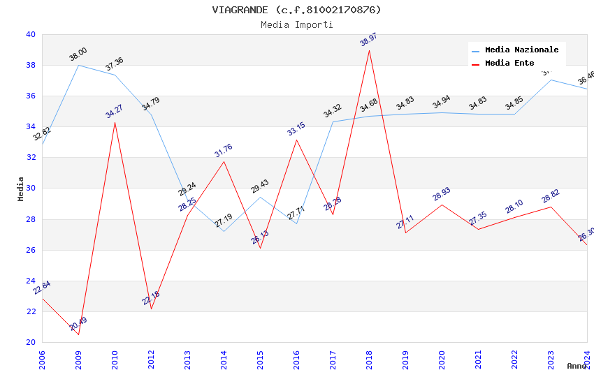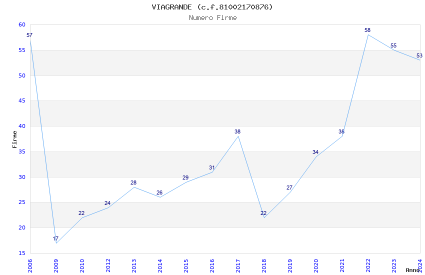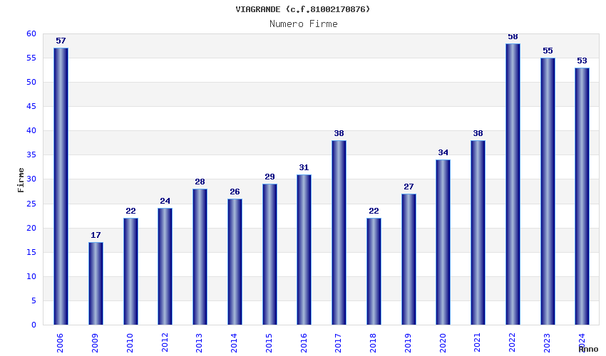 | Anno | Firme | Importi | Media | Naz. | Reg. | Prov. | Comu. |