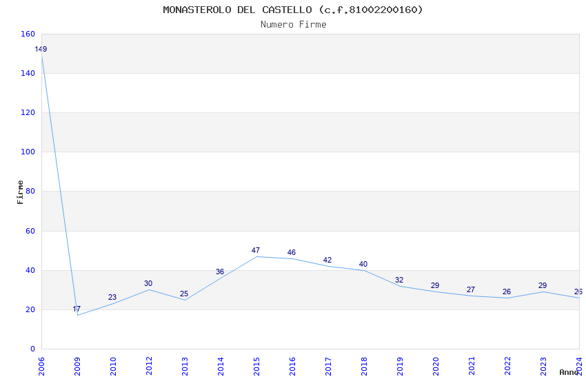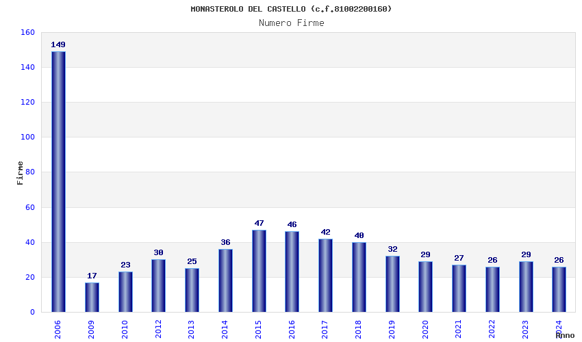 | Anno | Firme | Importi | Media | Naz. | Reg. | Prov. | Comu. |