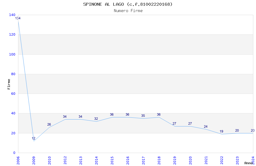 | 2006 | 134 | 2.565,50 | 19,15 | 13.189 | 3.452 | 369 | 1 |