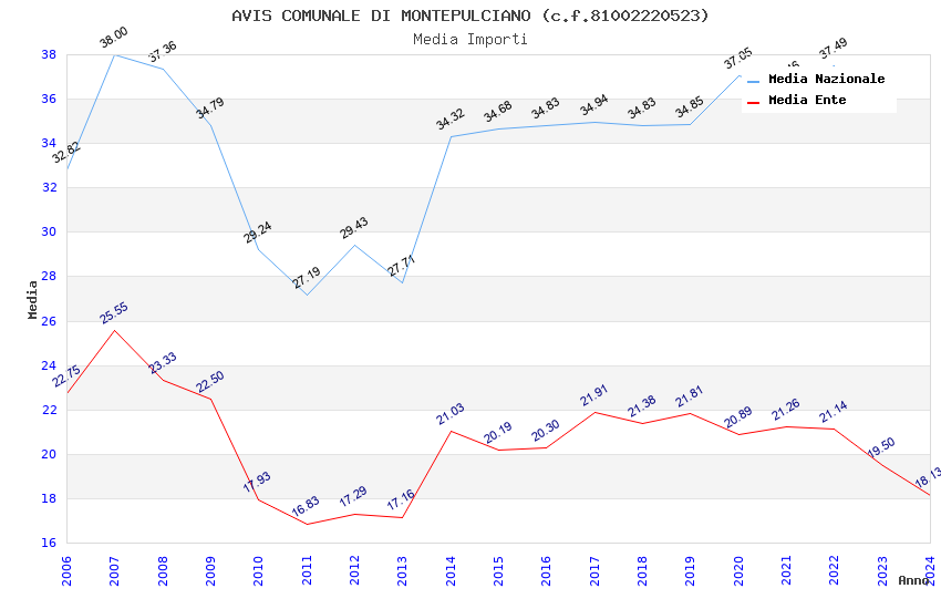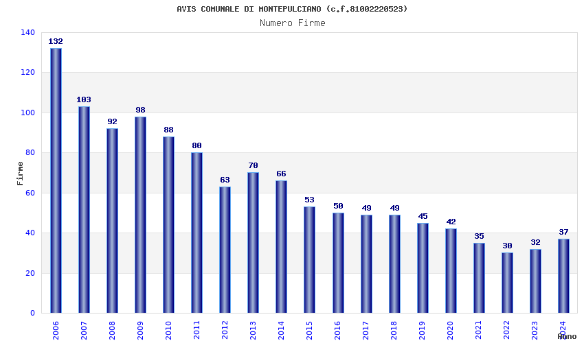 | Anno | Firme | Importi | Media | Naz. | Reg. | Prov. | Comu. |