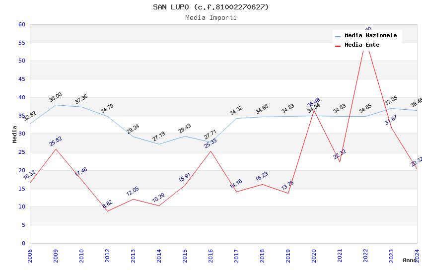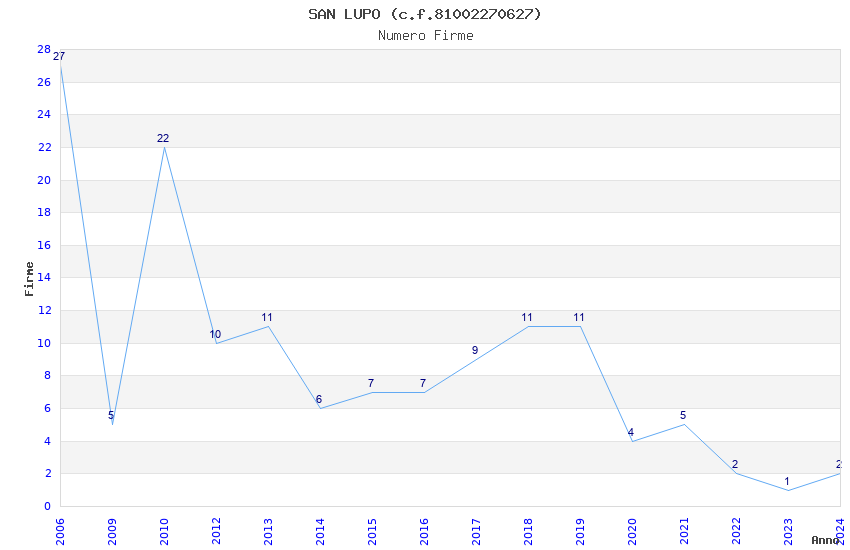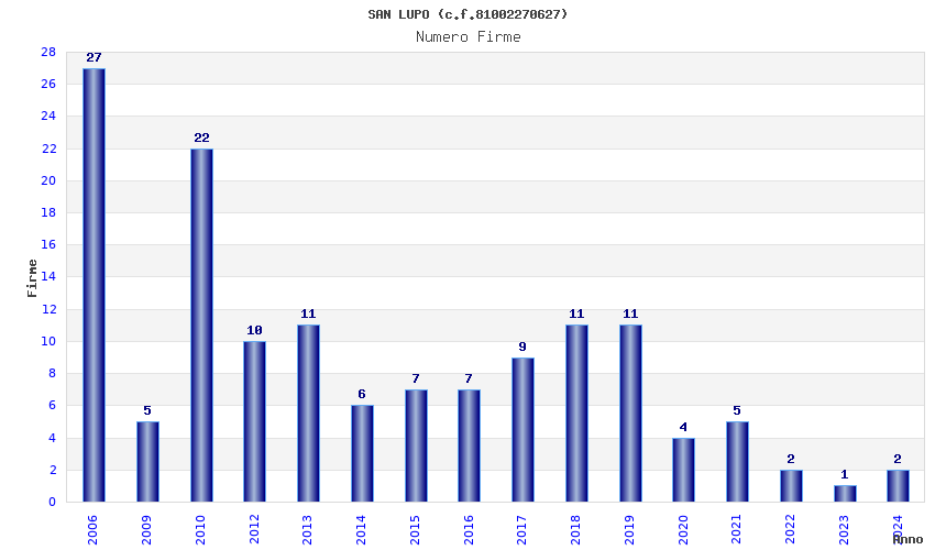 | Anno | Firme | Importi | Media | Naz. | Reg. | Prov. | Comu. |