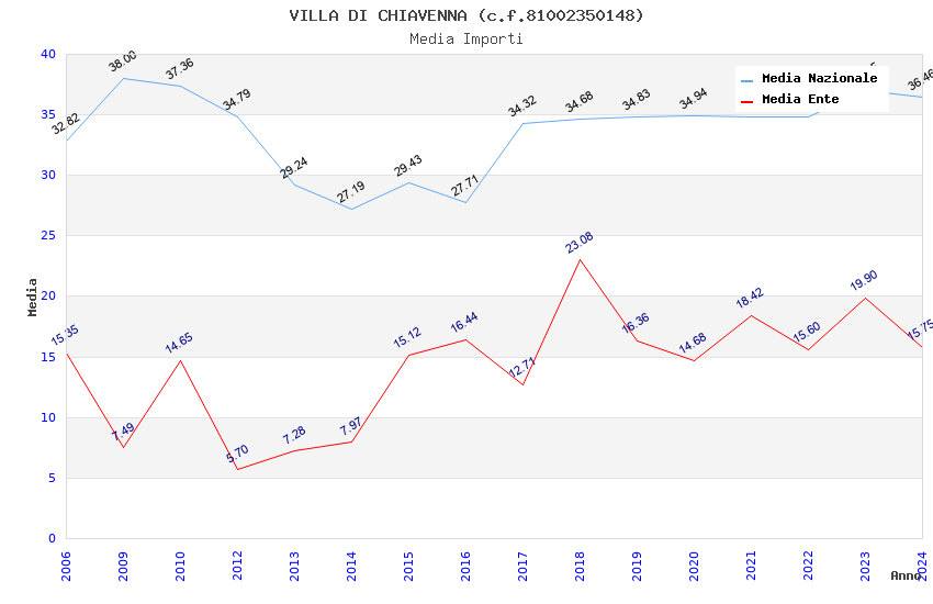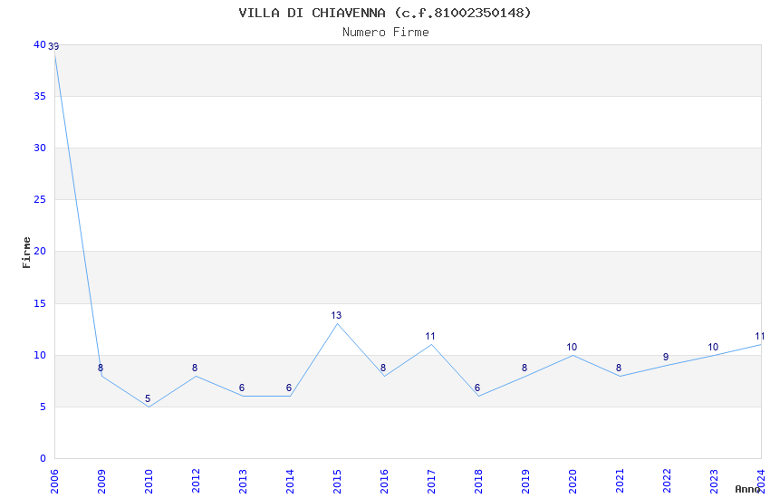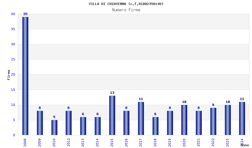 | Anno | Firme | Importi | Media | Naz. | Reg. | Prov. | Comu. |