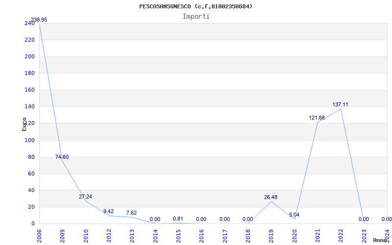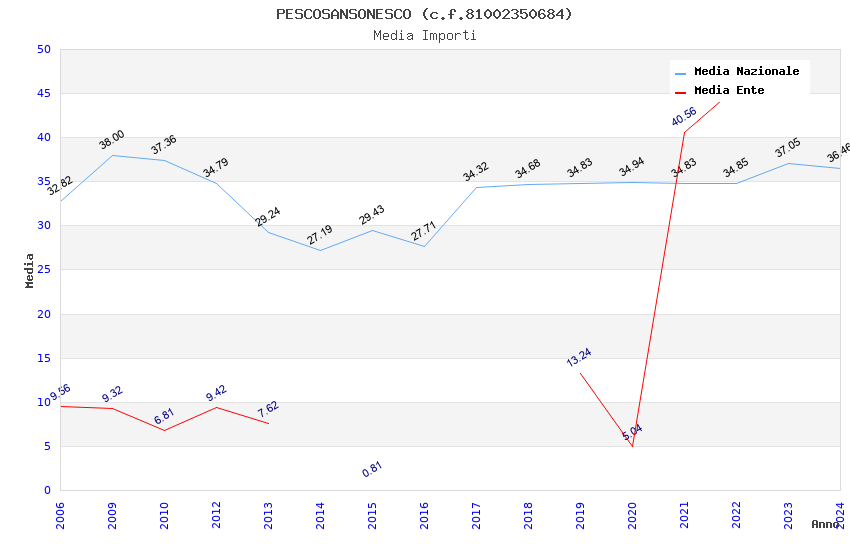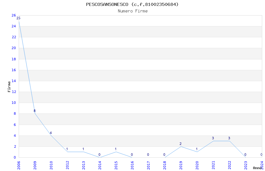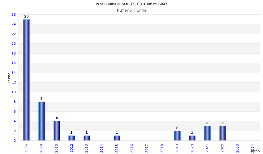 | Anno | Firme | Importi | Media | Naz. | Reg. | Prov. | Comu. |