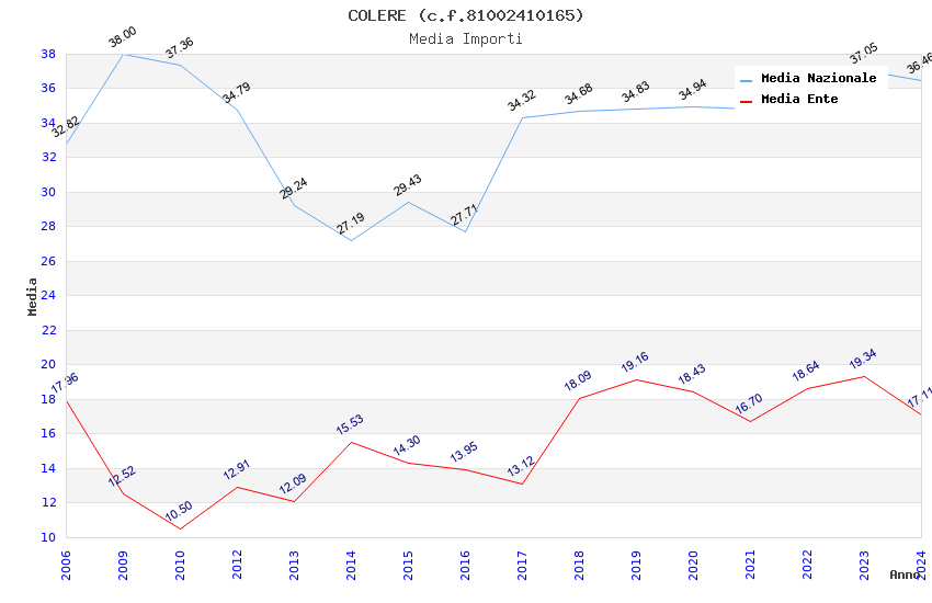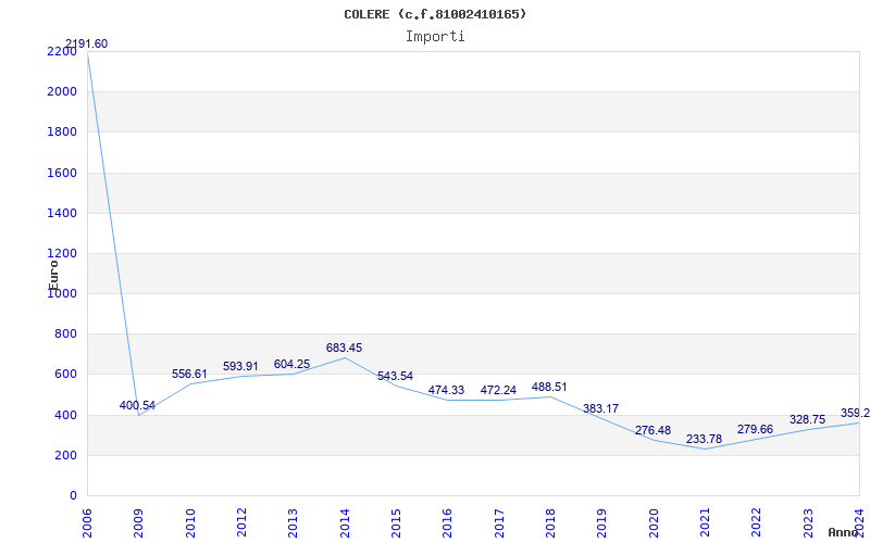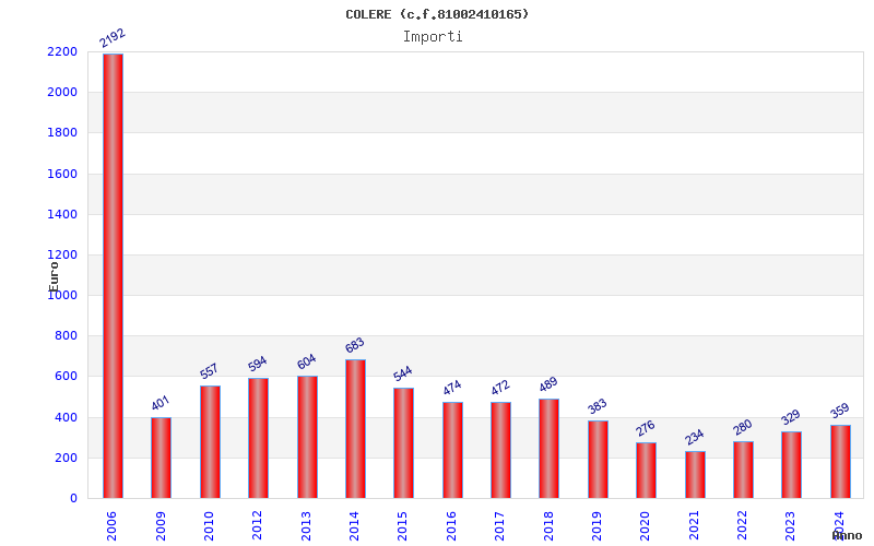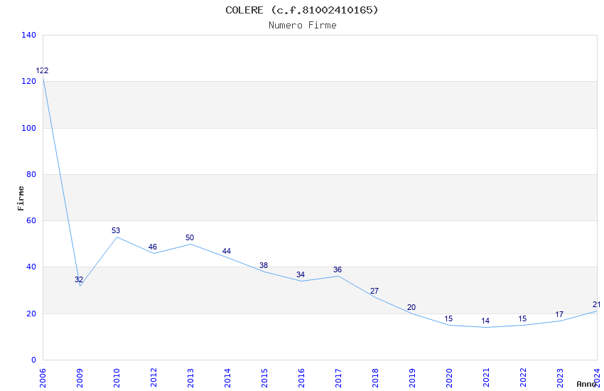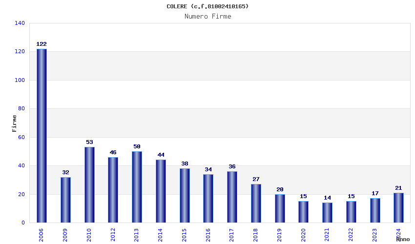 | Anno | Firme | Importi | Media | Naz. | Reg. | Prov. | Comu. |