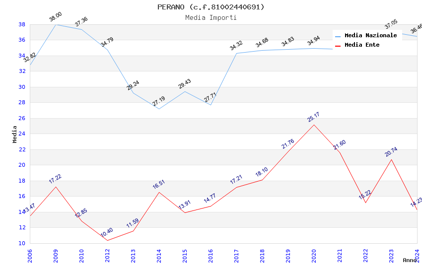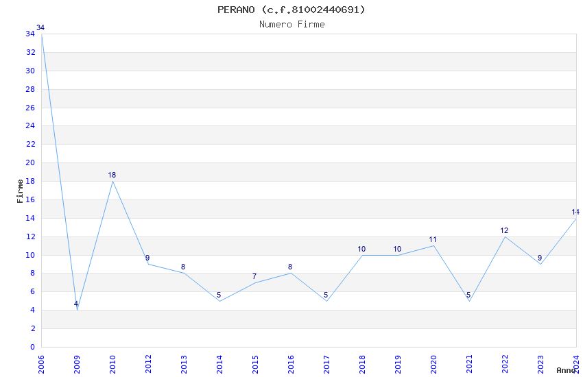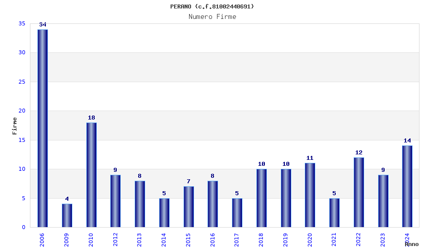 | Anno | Firme | Importi | Media | Naz. | Reg. | Prov. | Comu. |