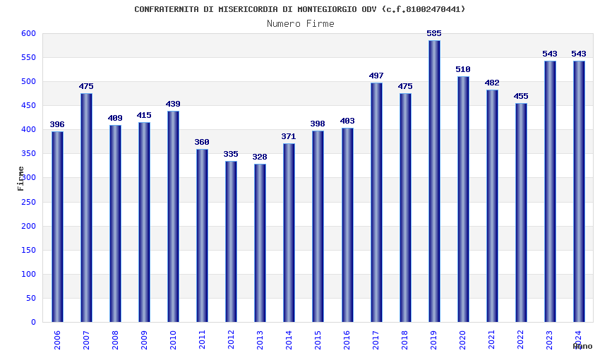 | Anno | Firme | Importi | Media | Naz. | Reg. | Prov. | Comu. |