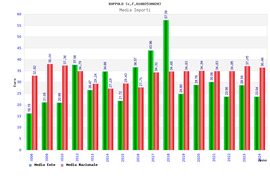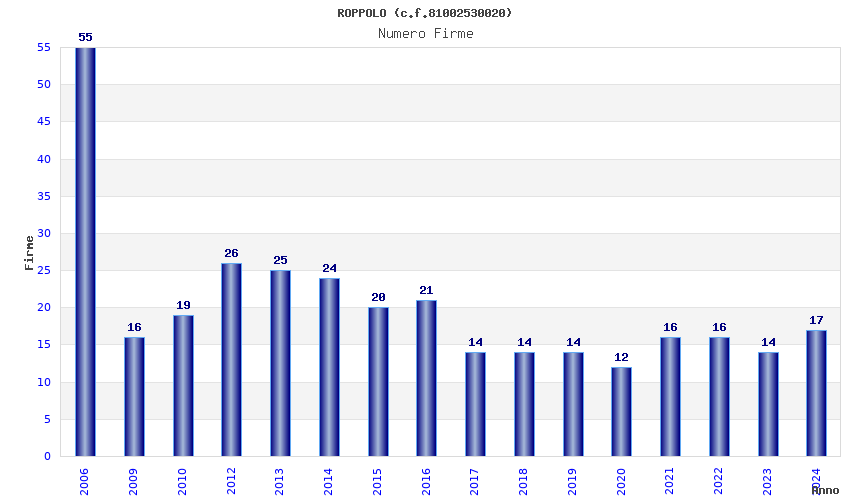 | Anno | Firme | Importi | Media | Naz. | Reg. | Prov. | Comu. |