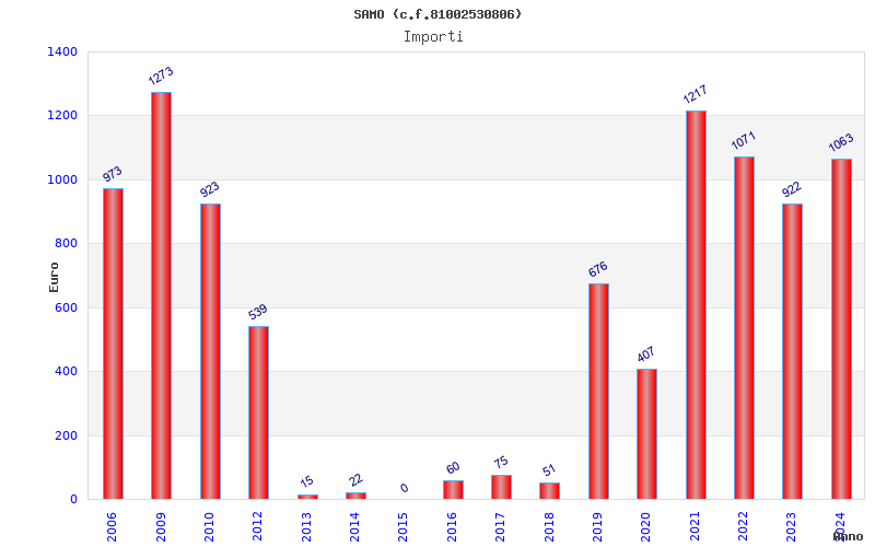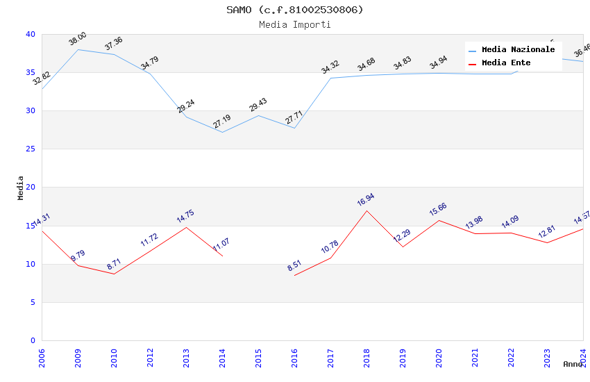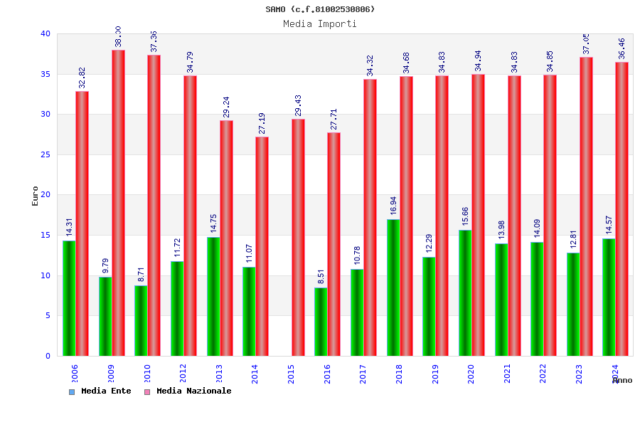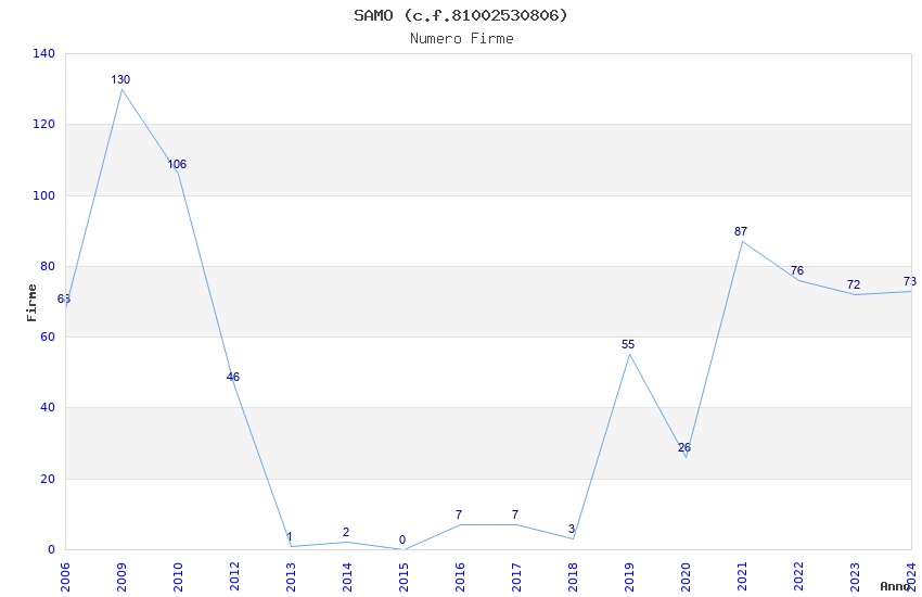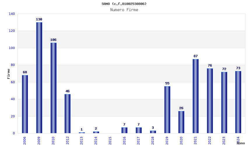 | Anno | Firme | Importi | Media | Naz. | Reg. | Prov. | Comu. |