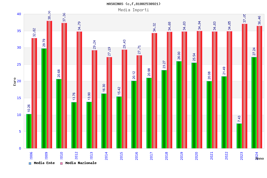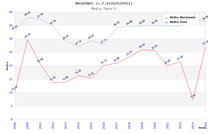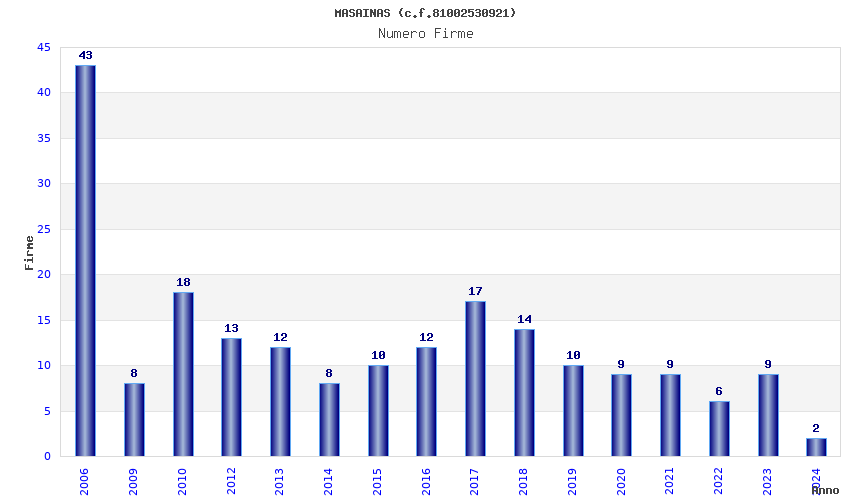 | Anno | Firme | Importi | Media | Naz. | Reg. | Prov. | Comu. |