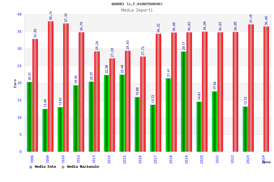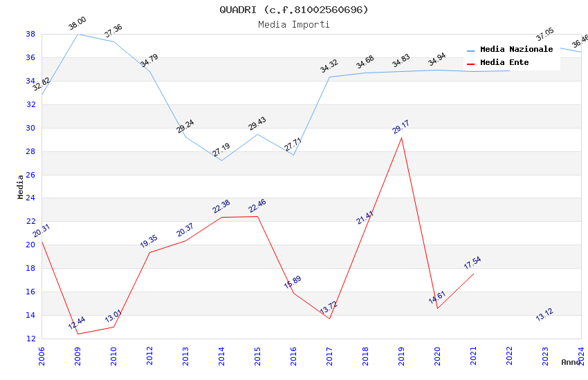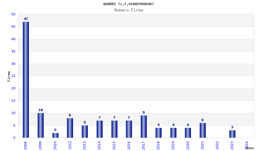 | Anno | Firme | Importi | Media | Naz. | Reg. | Prov. | Comu. |