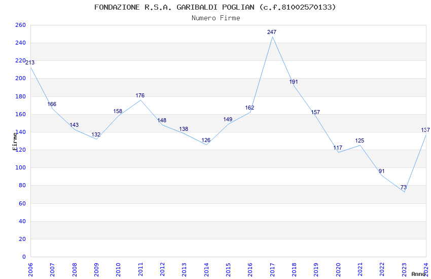 | 2023 | 73 | 2.125,04 | 29,11 | 22.615 | 4.773 | 255 | 23 |