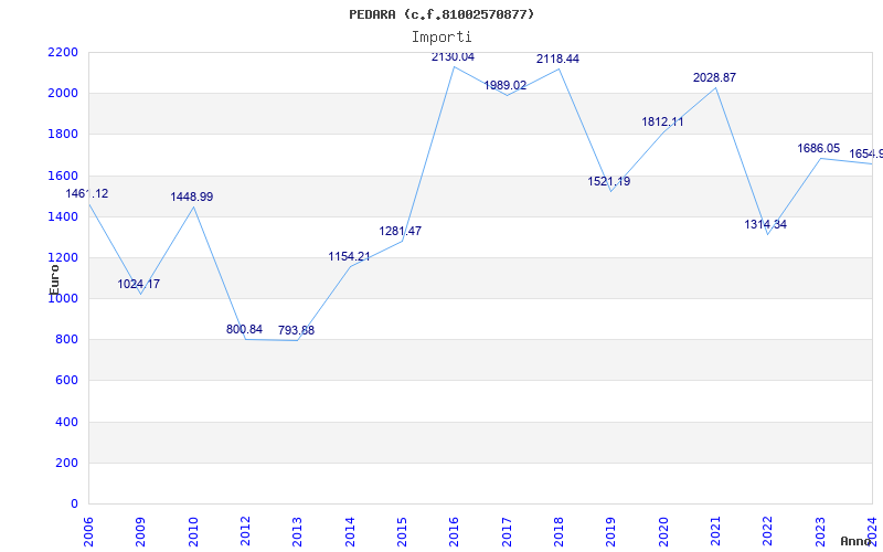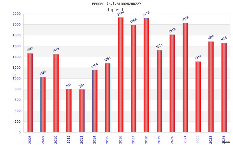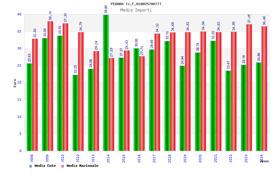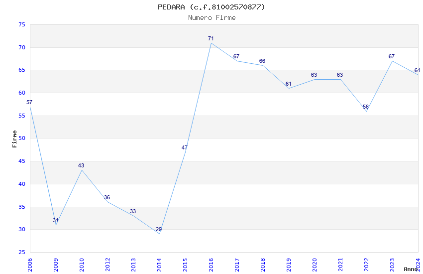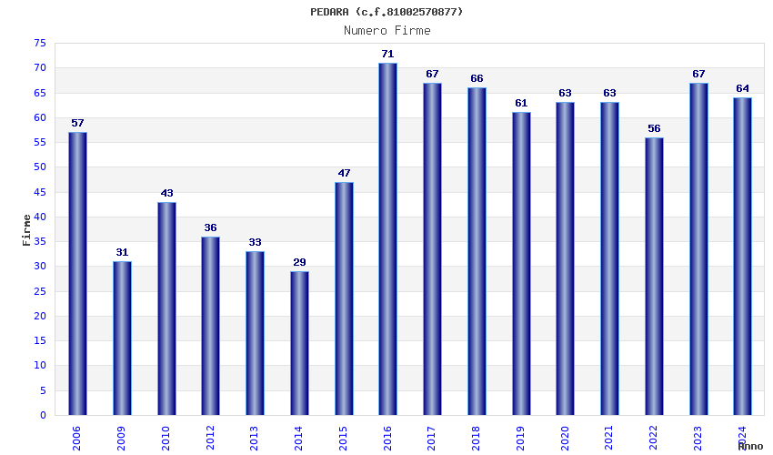 | Anno | Firme | Importi | Media | Naz. | Reg. | Prov. | Comu. |