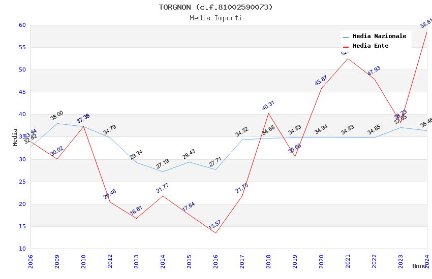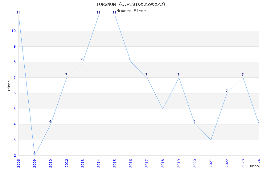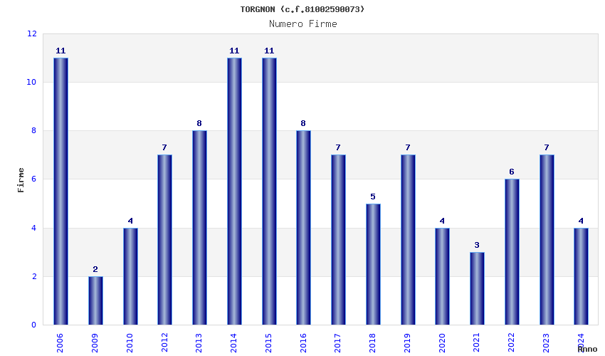 | Anno | Firme | Importi | Media | Naz. | Reg. | Prov. | Comu. |